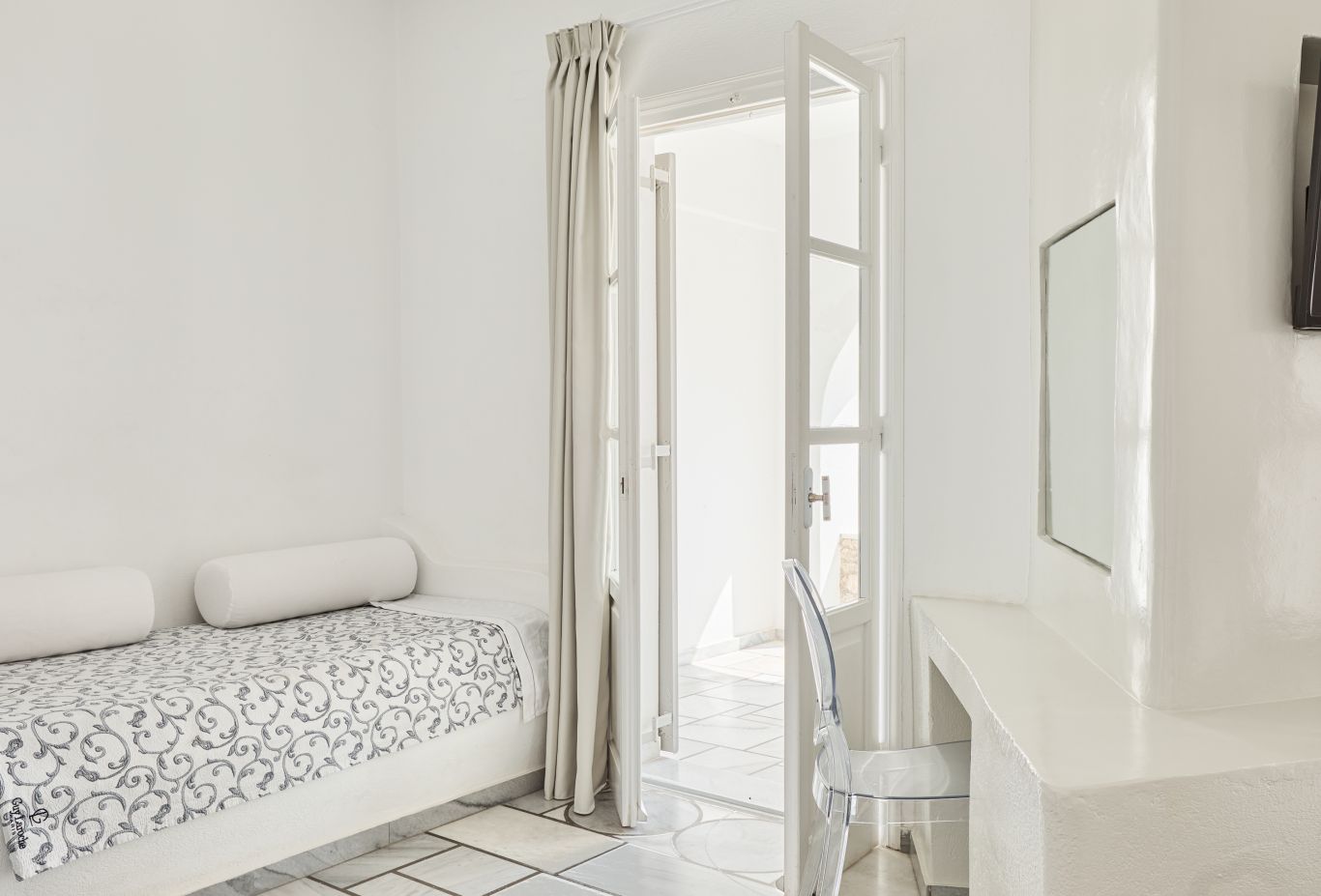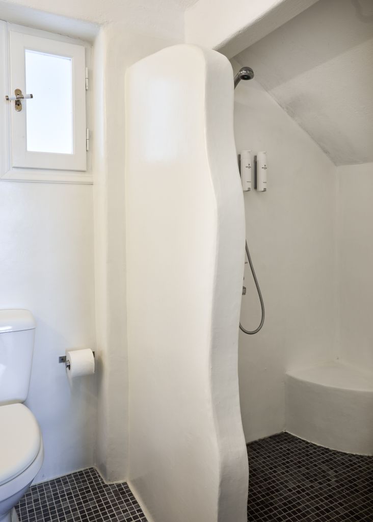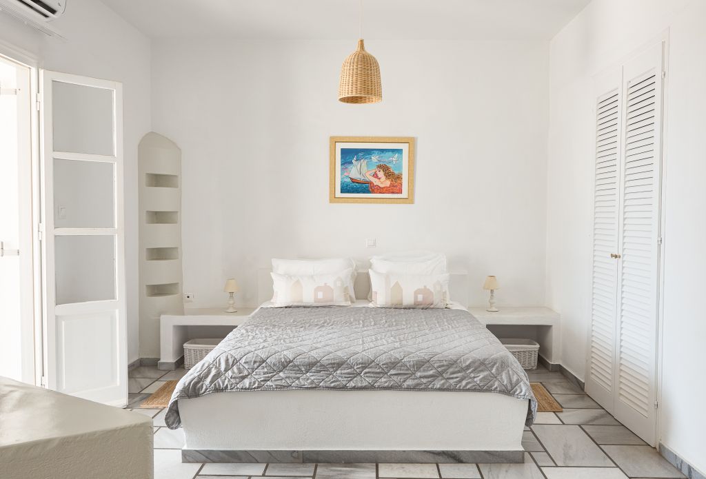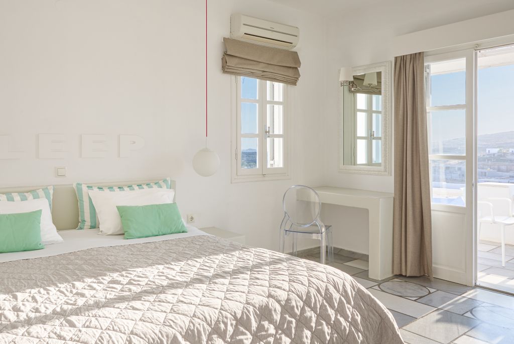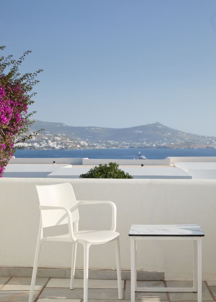 Spacious rooms which perfectly combine the Cycladic and modern design, offering also excellent sea view from the private terrace (15m2).